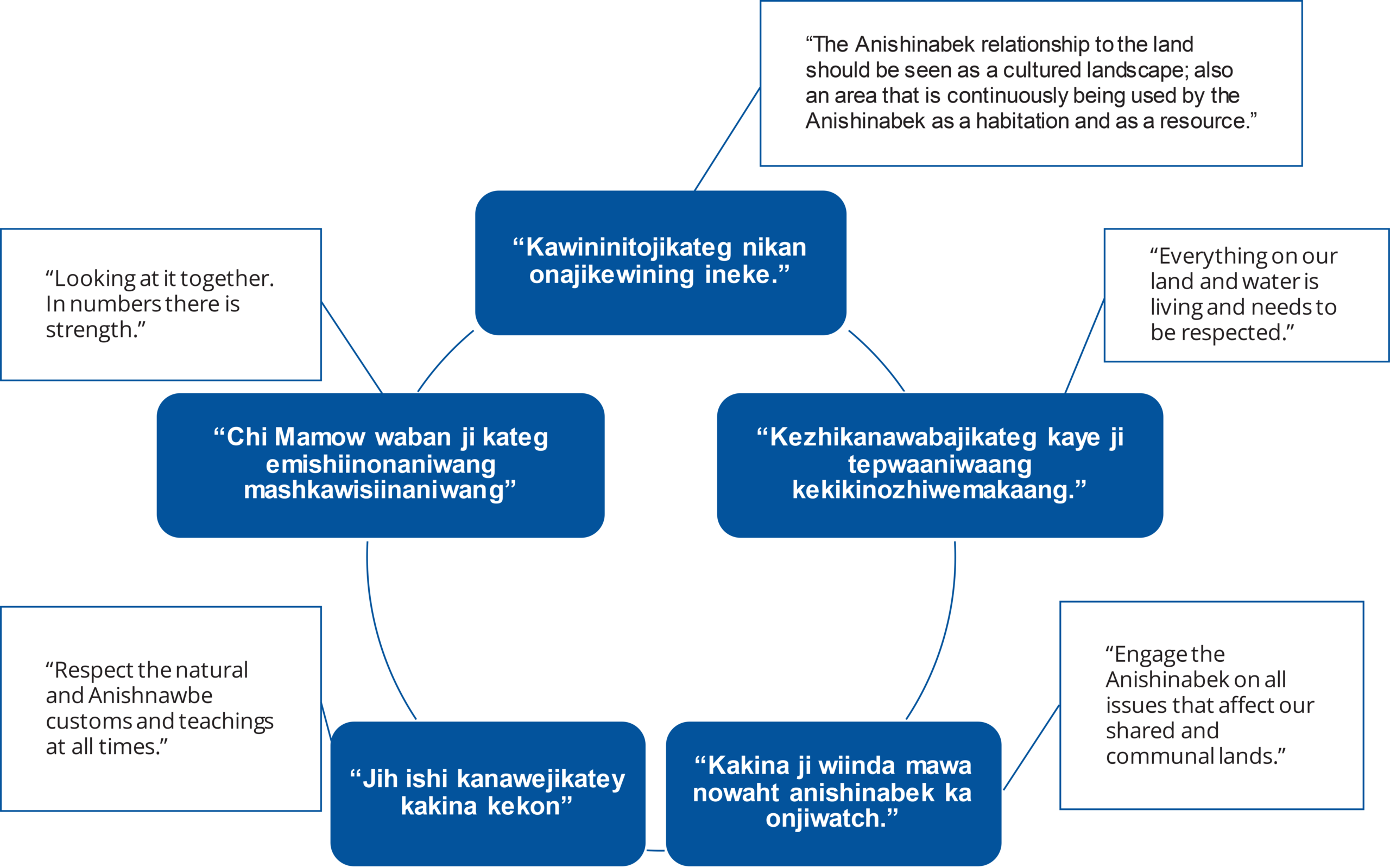 To honour the traditional lands in which this community access road will be developed and to respect the traditional teachings, the following Guiding Principles (developed for the Marten Falls First Nation Community Based Land Use Plan for Project Planning and Engagement) will be adopted throughout the Project.